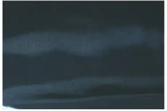 某批次 TC6叶片在阻尼台上钎焊耐磨硬质合 金块后,发现阻尼台附近的叶身表面出现了“白斑” 形貌(见图8)。对“白斑”区域及周围正常区域进行 金相检验,结果如图9所示。由图9可知:在显微镜 下无论如何调焦,“白斑”区域的组织均模糊不清;周 围正常区域的显微组织为双态组织。