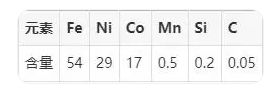 4J29合金的主要成分为铁(Fe)、镍(Ni)和钴(Co),此外还含有少量的锰(Mn)、硅(Si)和碳(C)等元素。这些成分的配比直接影响合金的金相组织及其性能。