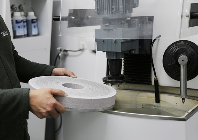 -不同的材料需要不同类型的磨石,川禾特别开发了不同种类的研磨石。对于普通的有色金属、延展性材料和黑色金属,如钢、铝、钛等,可以选用氧化铝磨石;对于硬质合金或碳化硼、陶瓷等硬质材料,我们还提供大尺寸的金刚石砂轮研磨盘。